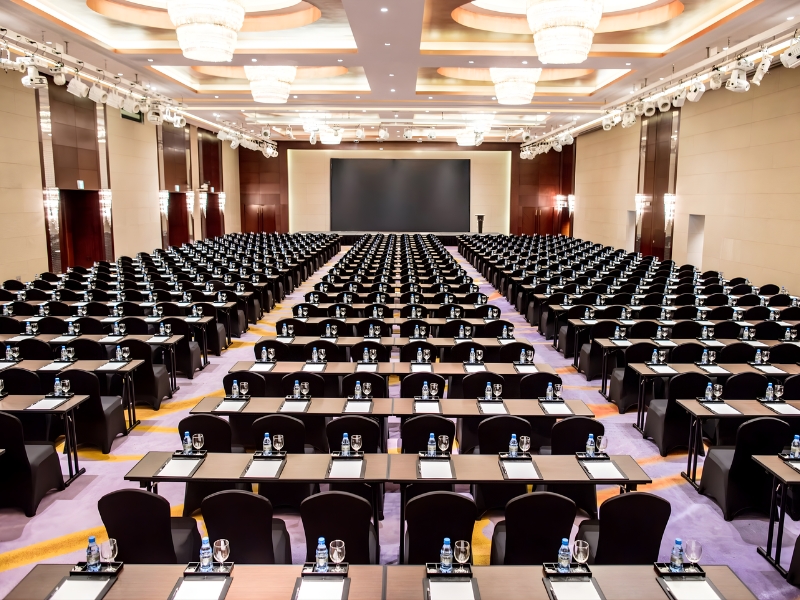 Hệ thống phòng họp chuyên nghiệp: Các phòng hội nghị được trang bị âm thanh, ánh sáng, màn chiếu hiện đại với sức chứa linh hoạt từ 50 đến hơn 400 khách.