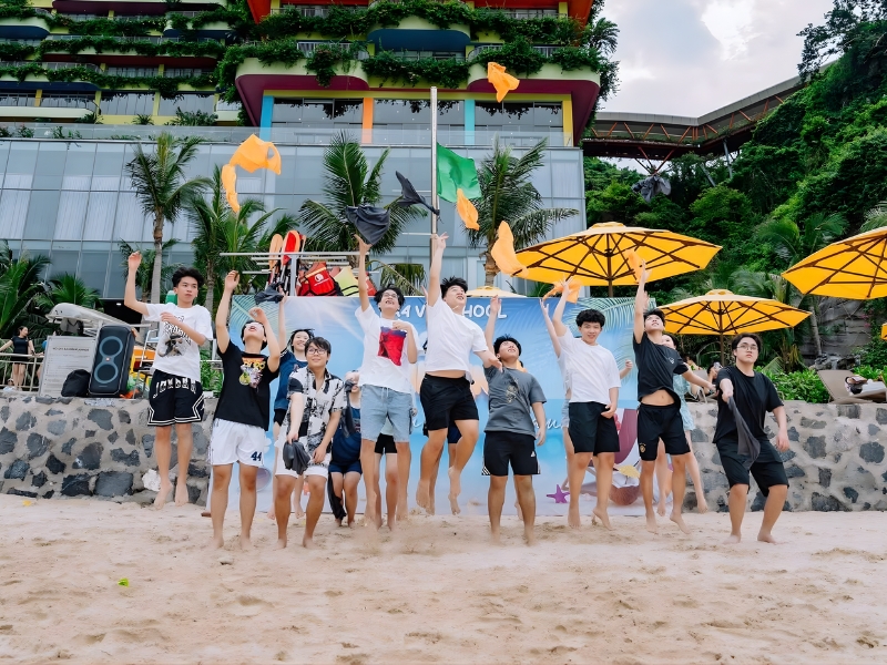 Hoạt động team building tại bãi biển Cát Bà là điểm nhấn giúp tăng cường tinh thần đồng đội và gắn kết nội bộ doanh nghiệp.