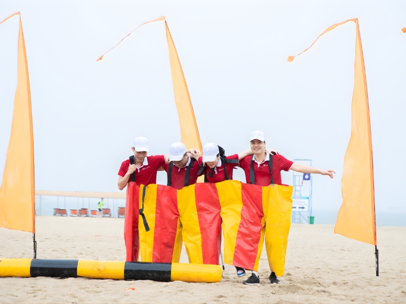 | 08h30 – 11h30 | TEAM BUILDING BÃI BIỂN | - Khởi động tập thể - Chia đội – đặt tên – slogan - Chuỗi trò chơi vận động, phối hợp, tư duy - Tổng kết – trao thưởng – chụp ảnh flycam |